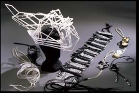 My creative life began with my introduction to the fiber arts. Ever since, it has been a doorway to wonderful possibilities. Playing with established processes such as weaving with wire mesh-pre-made cloth, or trash from the SF dump, even using basket reed as warp, has allowed me outstanding sculptural creations. I can lift dimensional vessels from the loom, clothing can become, far out performance costume as well as sculpture when not worn, or fabricate decorative quilts, hats, shoes, literally anything and everything that can be made from cloth.
