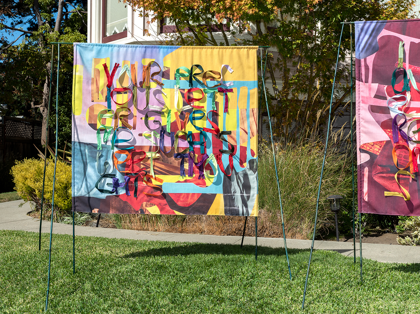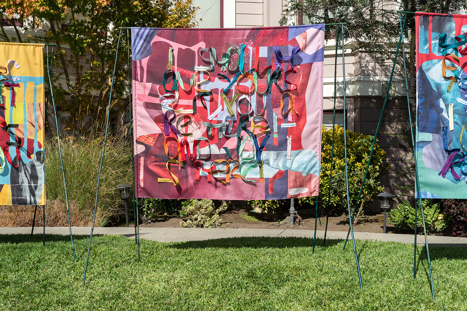 Liz Harvey is a queer artist who makes textiles, sculpture, collage, and performance, that disorient viewers while pointing towards queer and environmental liberatory futures. Along with making objects, she engages in performance projects in deep collaboration with choreographers and scientists.