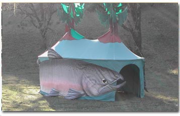 The salmon tent was created as a mobile educational exhibit. Completed in 2004, it won an international award for tent manufacturing.