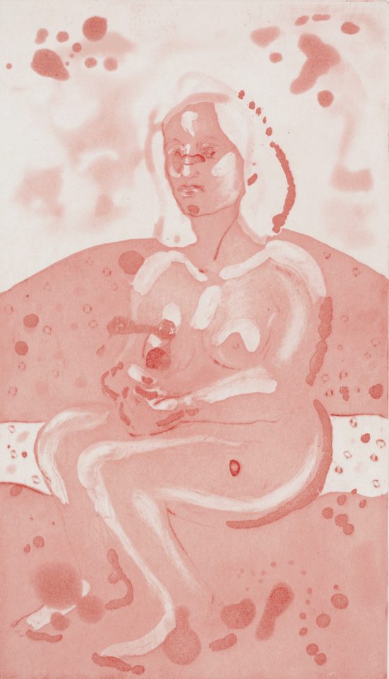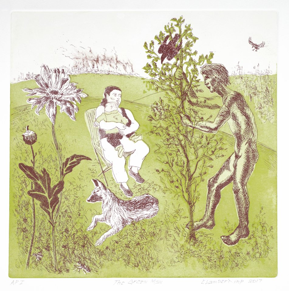 Using intaglio printmaking, I show women relying on their physicality, strength, courage, and dignity to confront absurd or dangerous circumstances. These include physical, emotional, and environmental threats. My protagonists, though vulnerable and not always heroic, are self-possessed and aware. I intend to engage viewers' curiosity and invite identification, not only with the characters, but with the visceral effects of their situations. I draw on familiar elements of popular and historic genres. Sometimes genteel on the surface, my images address women's struggles, identity, development, coping, and determination. I often employ satire and/or visual humor. I am inspired by feminism, surrealism, classical mythology, and early 20th century comics.