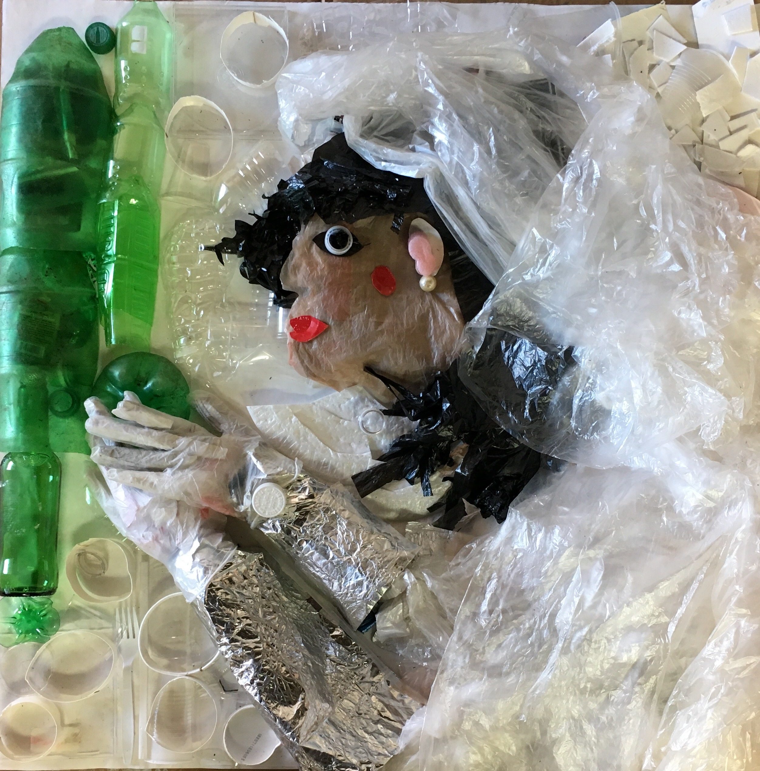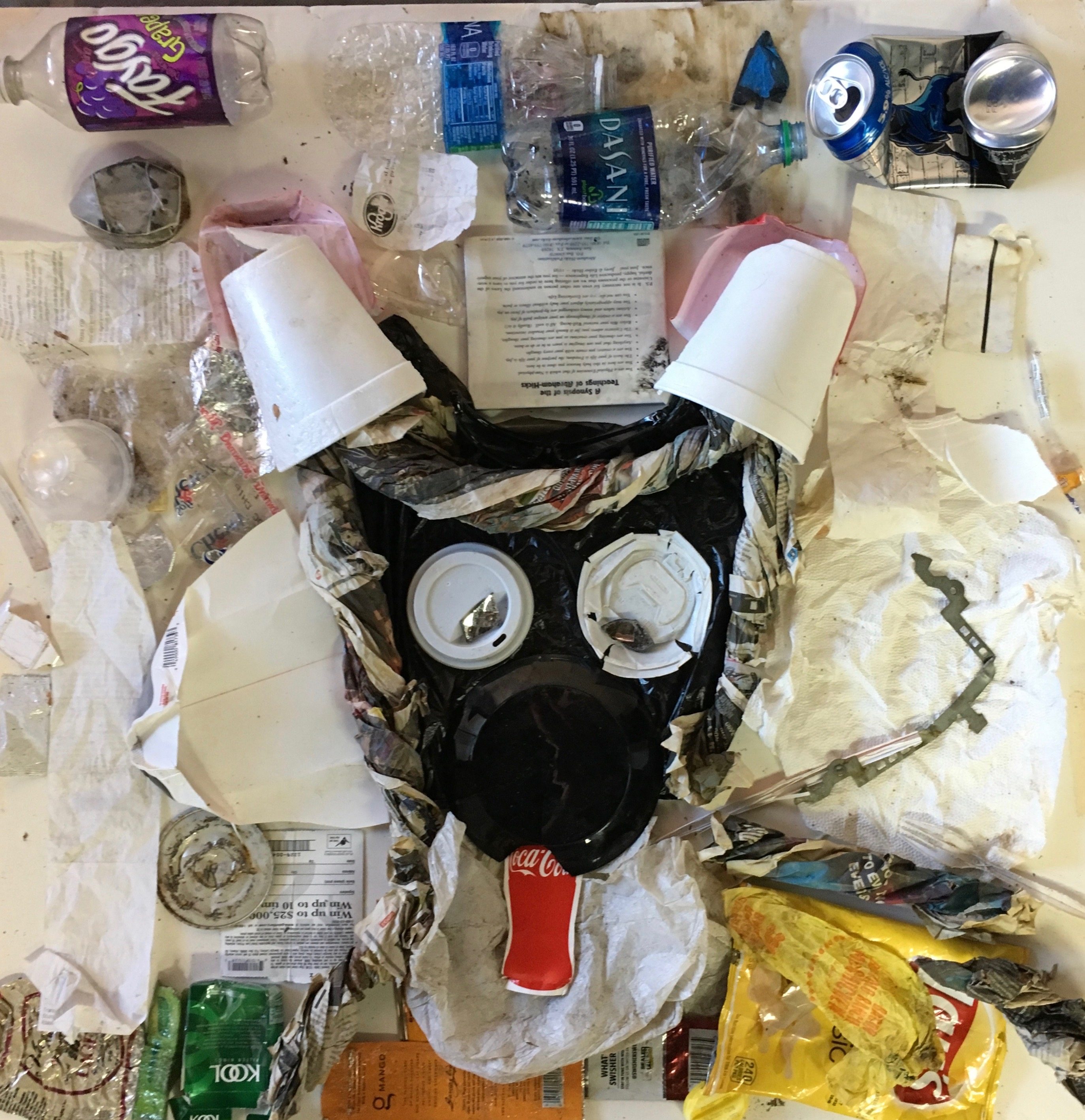 Each day I pick up the trash on the street outside my studio and at the end of the week, after sorting and cleaning, I create an artistic assemblage. I then take a photo of the piece and recycle/reuse the components. My work gives the viewer a different perspective of the wastefulness and excesses of our society. I am passionate about using my art to show that one person can help make the world a better place, albeit just one strip of pavement only 300 steps long.