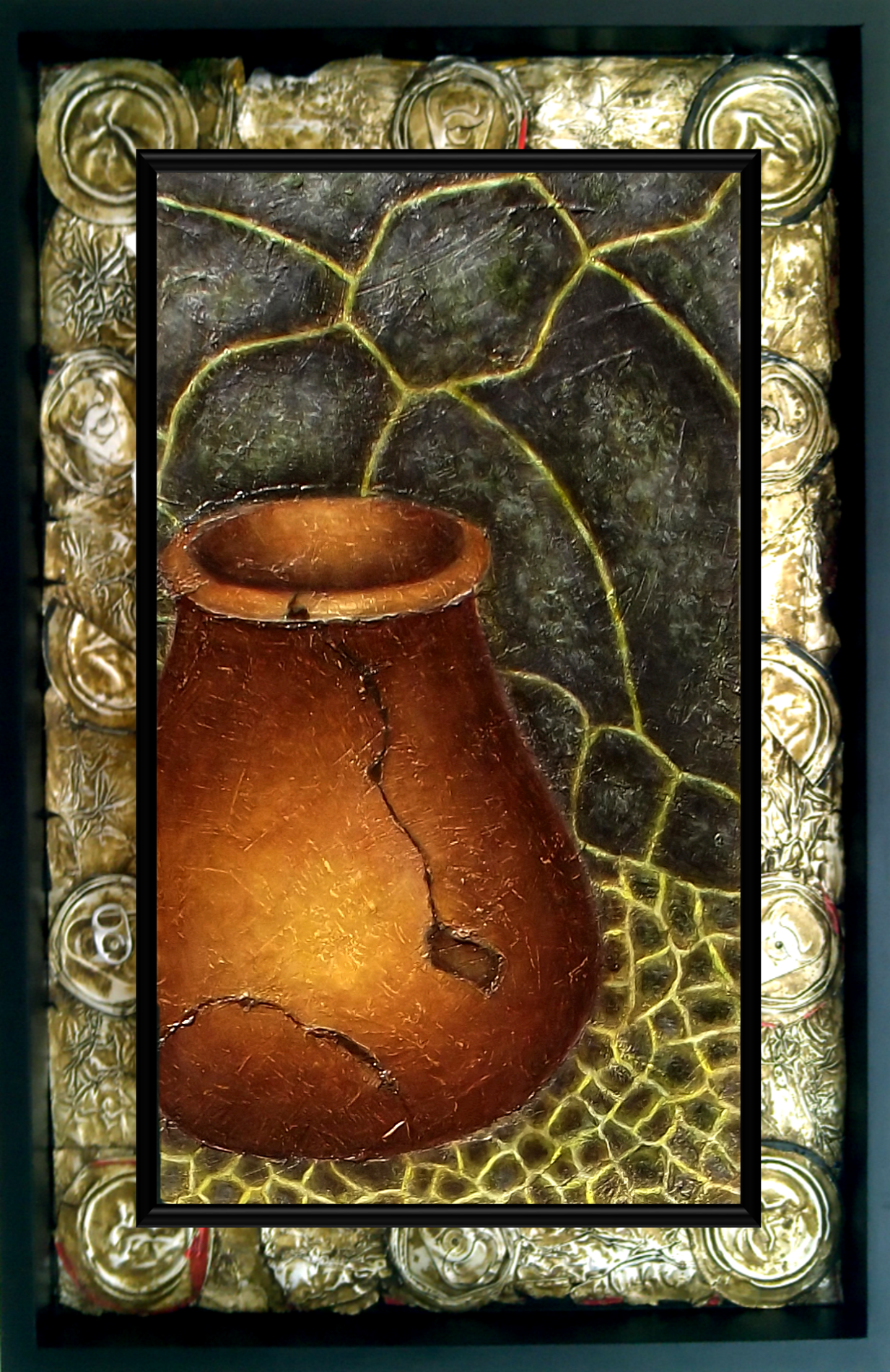 I search inside myself the vestiges of ancient cultures that have inhabited our continent, and specifically my country, Nicaragua. The pre-Hispanic pottery was a product of the earth and every vessel, pot, jar or censer, was not only an object of daily use, but also a sacred object with which both rulers and priests were buried, as well as the people of the villages, because ceramic pots were the container of life. I add to the buried memories of our pre-Hispanic cultures and the colonial walls that raised over them, the new walls of popular culture, symbols of the ephemeral and the disposable.