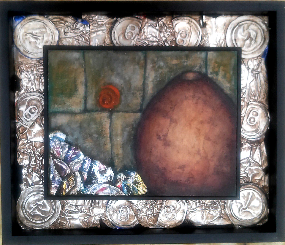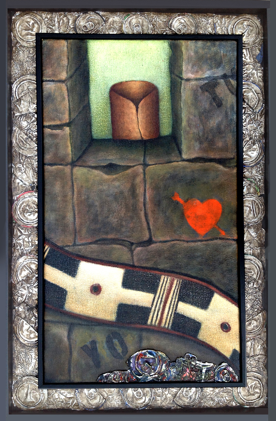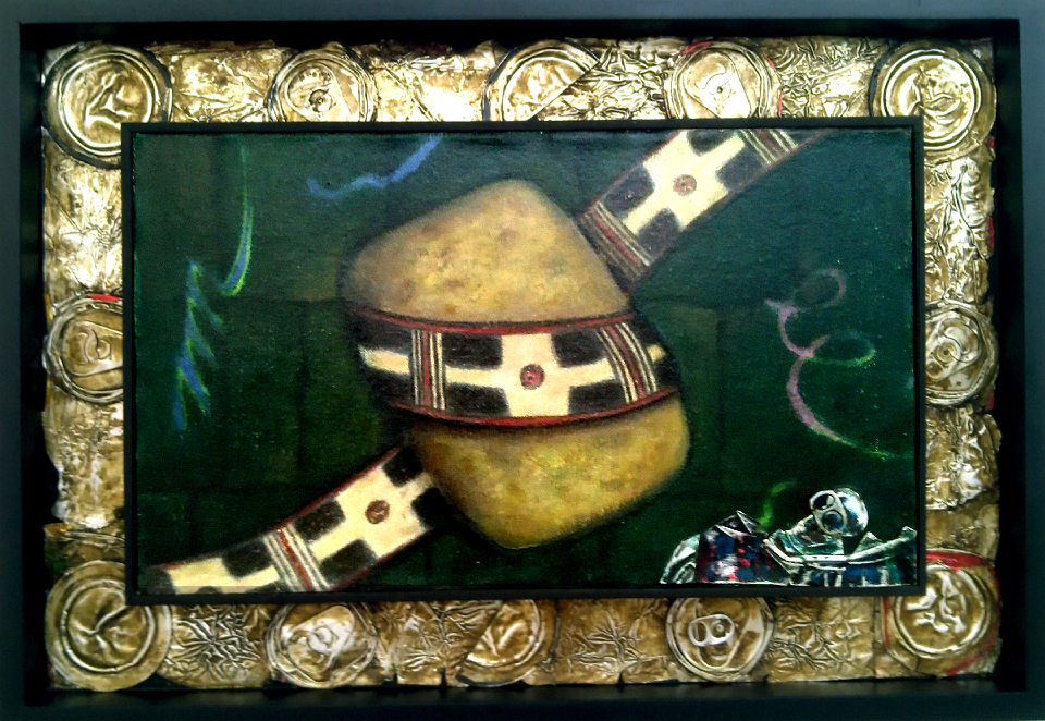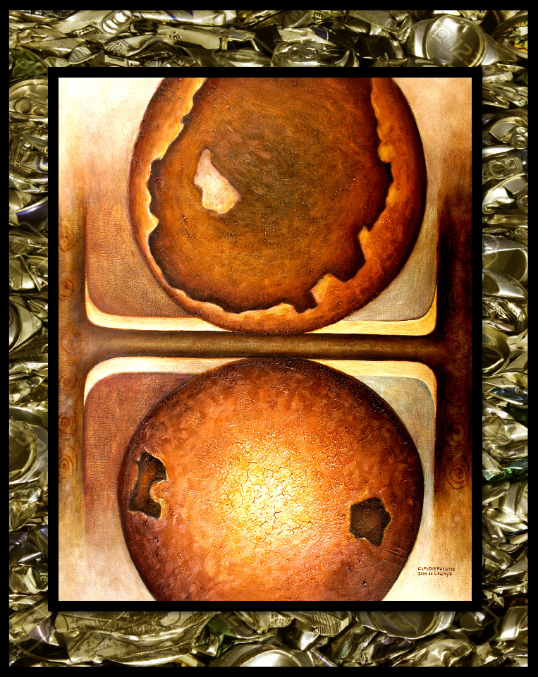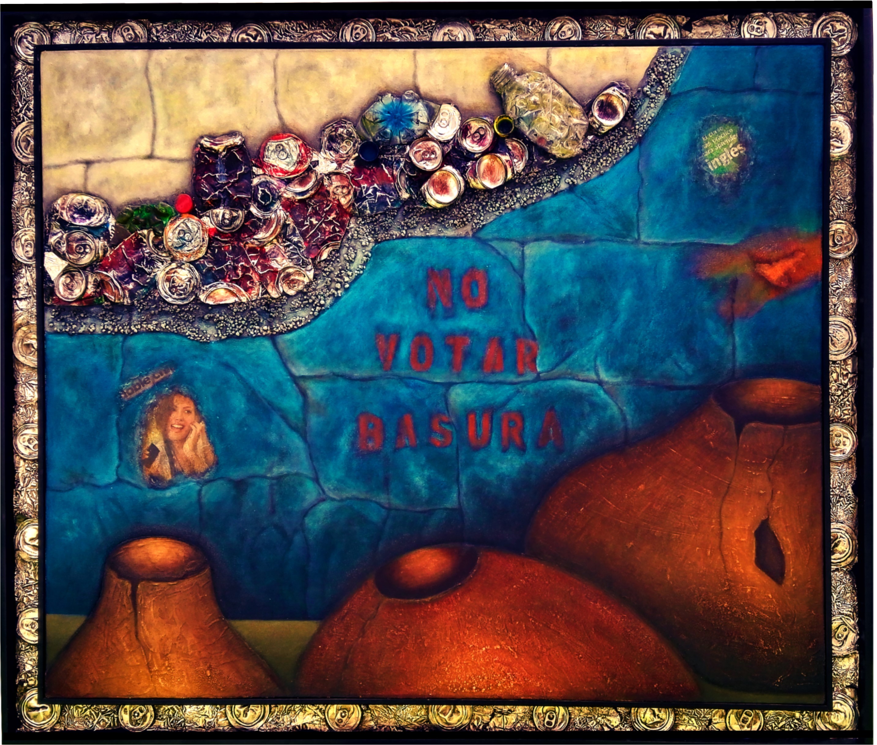 Oil painting, textures, trimmed soda cans and graffiti, built our Latin American collective unconscious populated by three cultures intermingled.