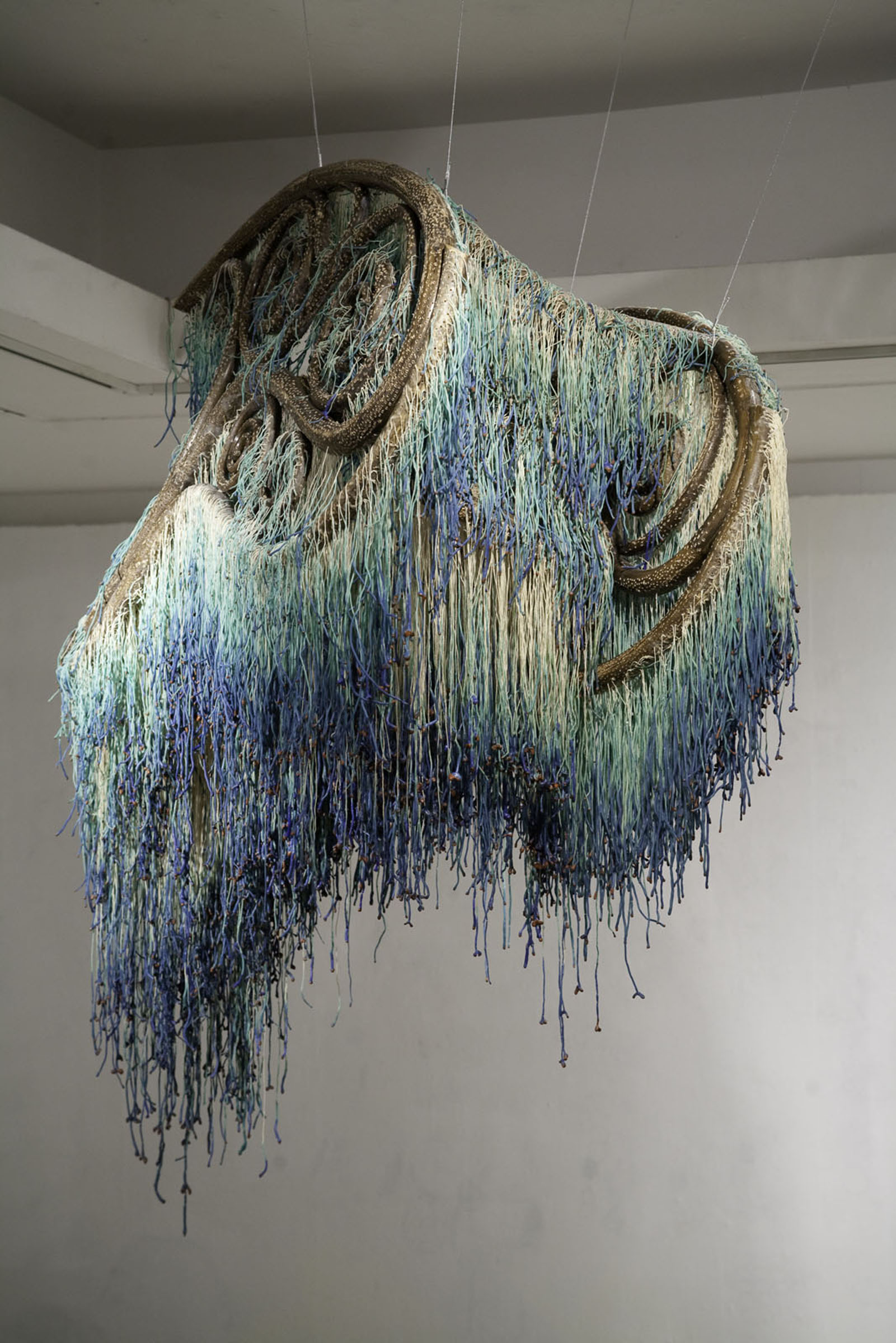 The artwork that I make is a testimony to my search for a point of reconciliation; an attempt to navigate through the paradox of having an environmentalist agenda and still being an object maker and user of materials. My work embodies the tension that I feel from being both a critic and participant in the intersection of nature and culture. As an artist whose primary focus is that of reverence for the natural world, I have recognized the hypocrisy of using materials that contribute to the degradation of the earth. I now primarily use natural materials such as beeswax, pigment, and plant material that comes from non-indigenous, water-needing flora found in Tempe, Arizona. In addition I incorporate manmade materials such as used water bottles, paper towels, receipts, junk mail, and scraps of canvas that I unravel. These materials testify to the wasteful decadence of our contemporary lifestyle, and can all be re-purposed into art material. Additionally, the poetic action of my performance work allows for direct engagement with the audience. By creating unforgettable scenes in outlandish costumes, I am able to communicate the urgency of my work, while infusing it with humor and the absurd.