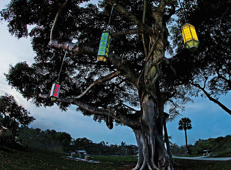 As a sculptor and installation artist, the sculptor's work has been heavily influenced by an interest in biological forms and light. Coupled with an interest in nature is a fascination for technical and scientific advances. As a result, a unique style has evolved that reflects her understanding of the natural world by using industrial materials, computer numeric control cutting methods (CNC), and organically inspired designs to create LED and solar powered light sculptures. By combining green consciousness with forward thinking and sustainable designs, each piece of artwork fabricated is a light sculpture that pays tribute to natureʼs beautiful efficiency.