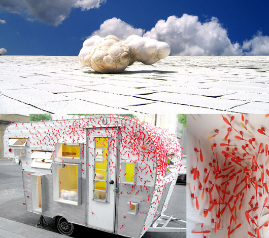 "Weather" begun in 2000, focuses on climate change. I approach this enormous subject in a variety of ways: collage, sculptural and installation.