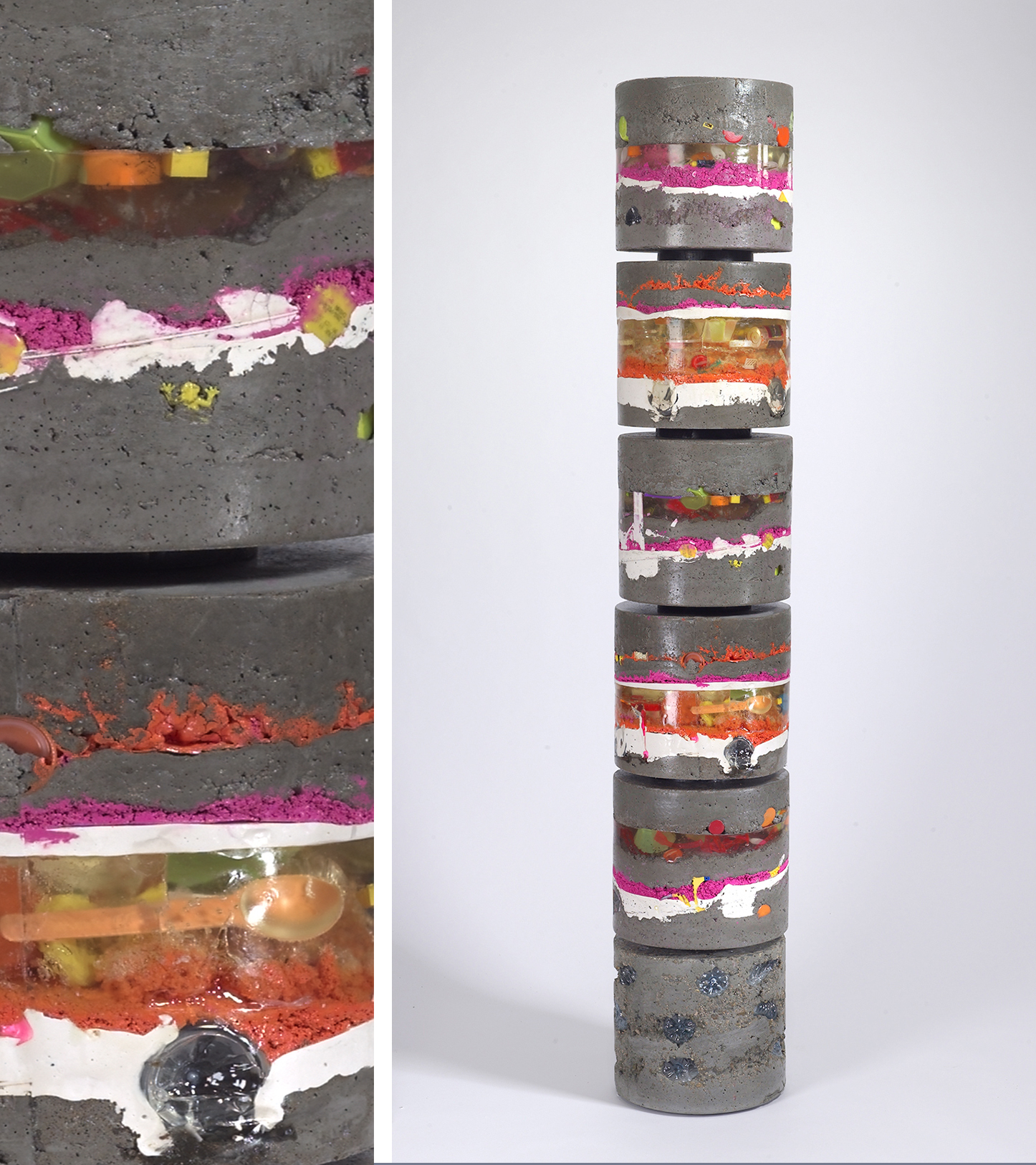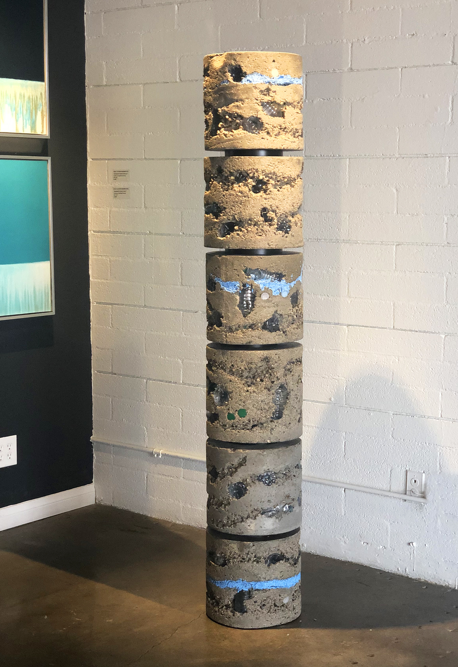 Working with materials of the earth, including cast porcelain, concrete and clay, Tyler Burton creates sculptures and installations that explore environmental issues such as plastic, shelter, glacial melt and wildlife habitats. In her Fossils of the Future series she explores our dependence on single use plastics through large layered monoliths and mini-liths, as well as castings of plastic products. Her larger than life figurative work considers the human or cultural experience from individual journey to social commentary. Large figures and migratory birds in abstract form make up the series SOS, a look at the Salton Sea and California's water issues. Tyler is inspired by the solitude and quiet of the desert and both simple and found materials. @etylerburtonart