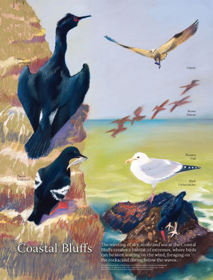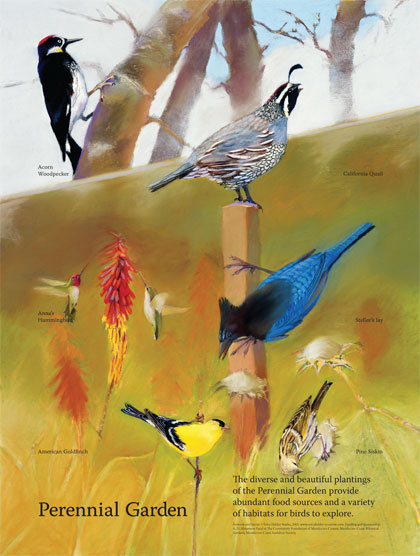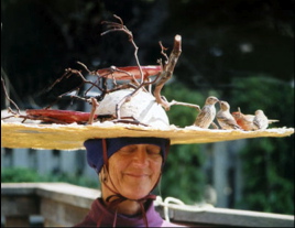 The Bird Feeder Hat teaches visitors how to locate and protect their watersheds. The Migration Maker, made with biology students of bronze, concrete and steel, is a calendar of local migratory patterns. The Salmon Skin Cape implies that we are encloaked by our home watershed. In addition, my interpretive panels in parks and preserves educate about habitat. Commissions: Oakland, International Airport, California State Parks, State Coastal Conservancy. MFA in Visual Art, Adjunct Professor in environmental ethics.
