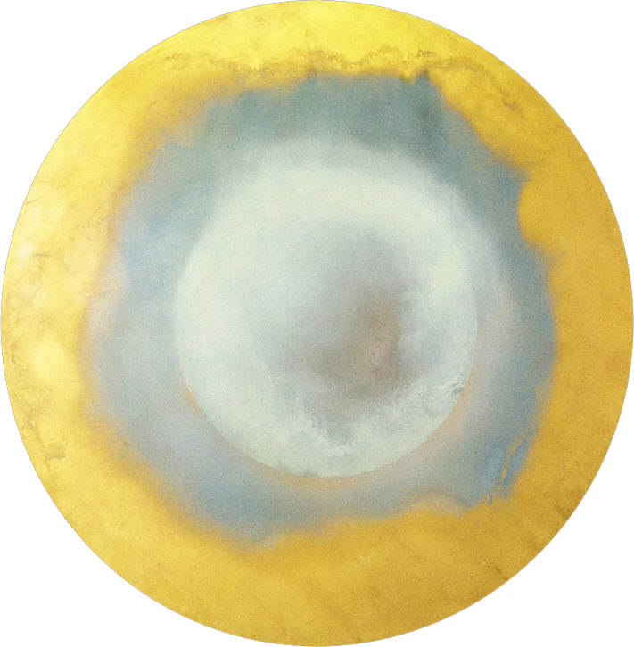 Roundness is fundamental to my visual thinking. The form conveys an essence of interconnection, wholeness and metaphysical purpose. When you look into one of my works, you respond to the energy of the color embedded in the piece. I use the gilded ground as a cue; precious metals indicate something beyond our physical world, something metaphysical.