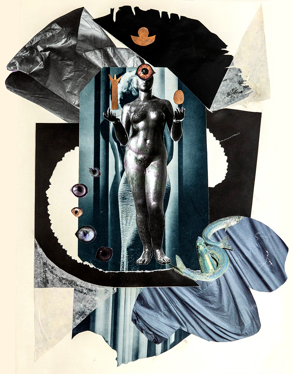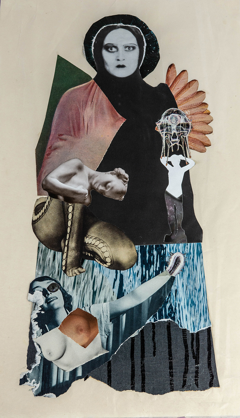 April B. Rosenberg is a multidisciplinary artist working in collage, poetry, talismanic jewelry and shell-craft. She collaborates with nature to explore ecological impact and our spiritual connection to the Earth and beyond.