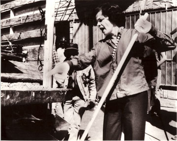 In the 1990's she had a small second home in Monte Rio, CA, along a creek flowing into the Russian River. Active in Sonoma County environmental issues, she often hosted activist meetings at a long wooden communal table under the redwoods. The flooding river inspired an exhibited body of work called 'Gaia Does the Laundry' (1995-96).