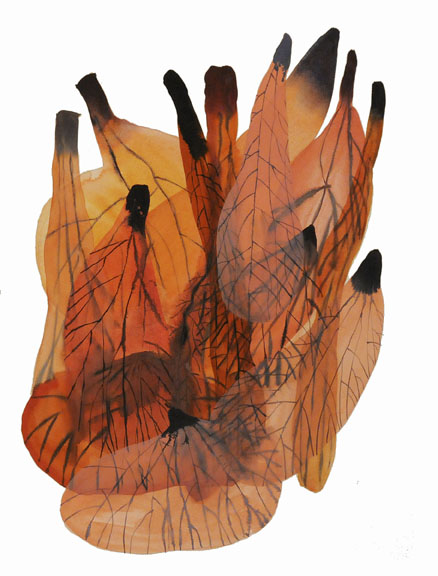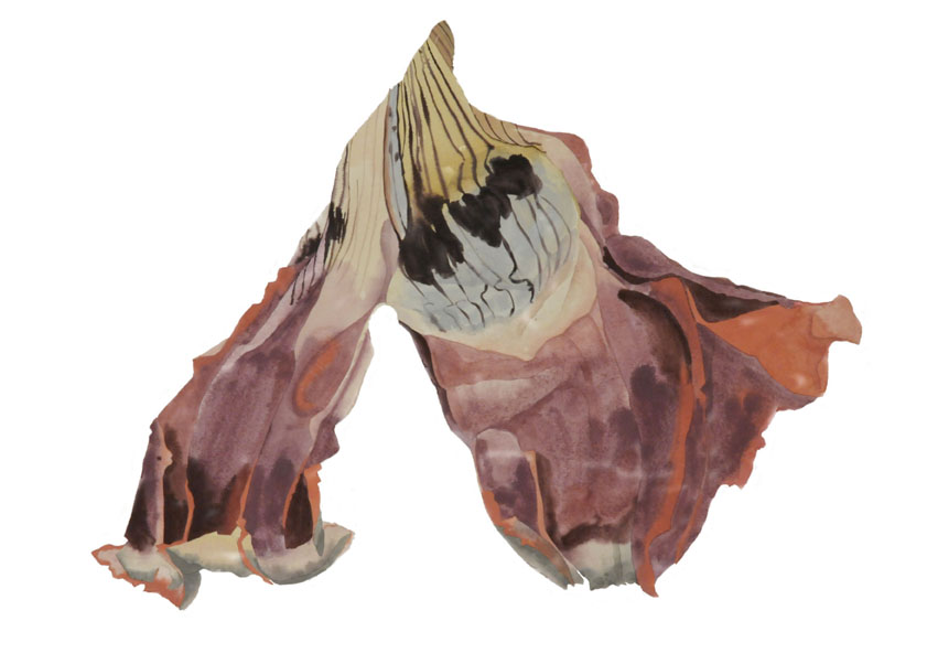 Through botanical forms I explore issues of change, aging, death and relationship between all living matter. All individual life forms, except bacteria, have a programmed life span. Evolution guarentees continuity of species and through mutation, new life forms. In my work, botany, anatomy and geology merge to show that all life forms evolved together and are interdependent. I work in watercolor and digital photography combined with pencil drawing.