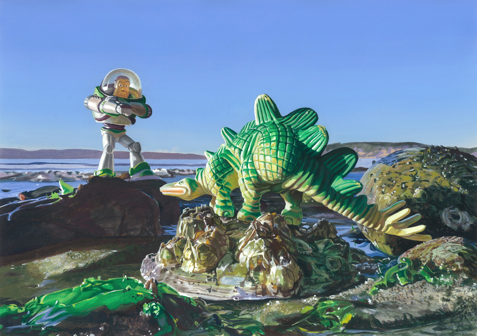 In my ongoing painting series, Watershed, I take a light-hearted yet subversive approach to the serious subject of ocean degradation, presenting a tongue-in-cheek taxonomy of our new post-consumer creatures of the sea. Influenced by the ideas of Pop artists Claes Oldenburg, Ed Ruscha and Andy Warhol, and the high-contrast light of Edward Hopper, I meticulously paint seascapes in oil and gouache, and craft beautiful images of conventionally ugly beach cast-offs, aiming to create provocative visual juxtapositions of form and idea.
