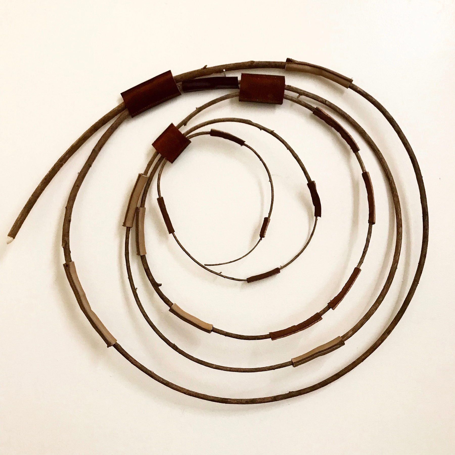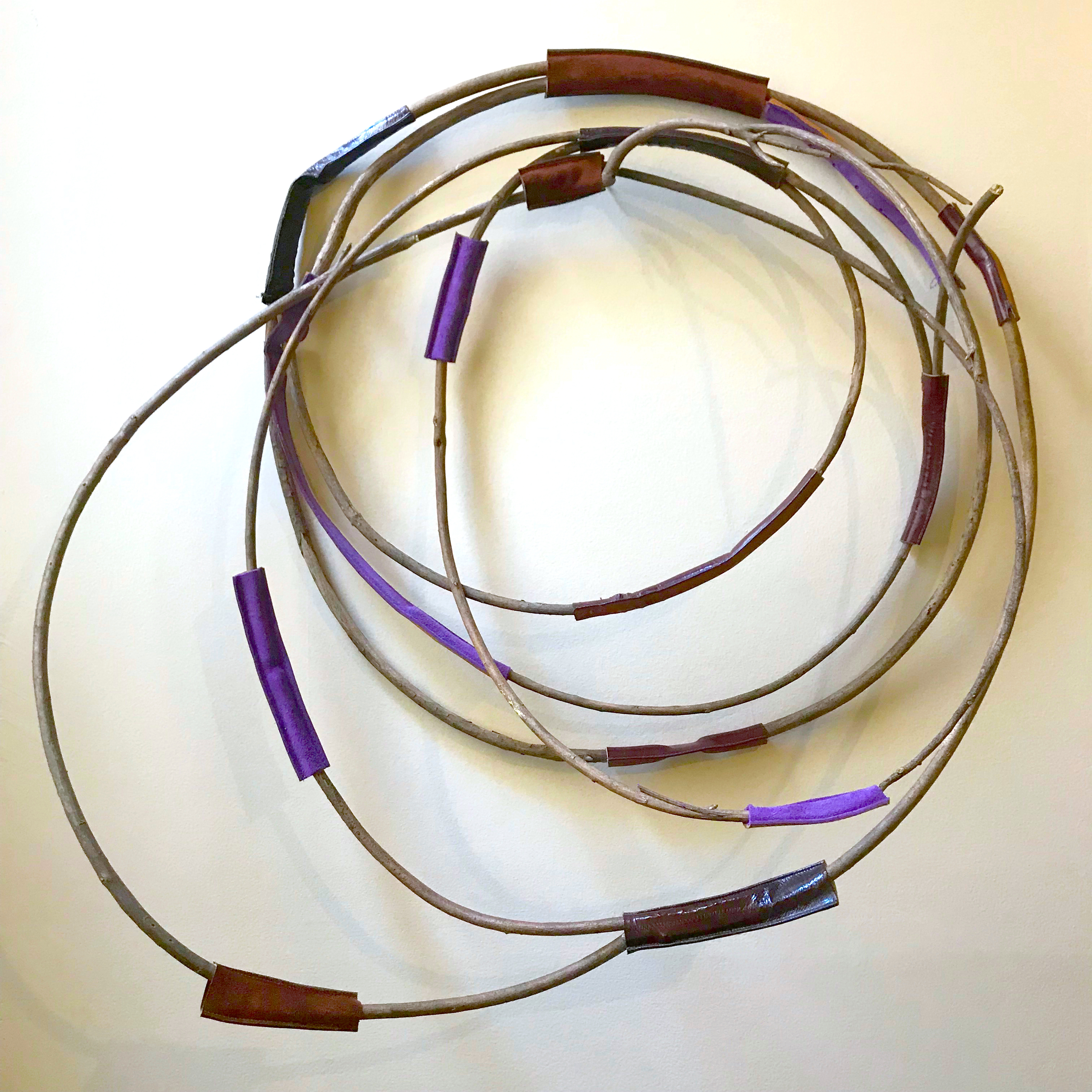 Early works took inspiration from years of shopping for second-hand fashion, transforming vintage clothing and accessories into assemblage objects. In contrast to the disposable nature of today’s society, she sought discarded objects from thrift stores and the street, focusing on those made from natural, sustainable materials. These unwanted commodities were manipulated to transform them into evocative works that raise questions about the environment, consumerism, community, beauty, and the world around us.