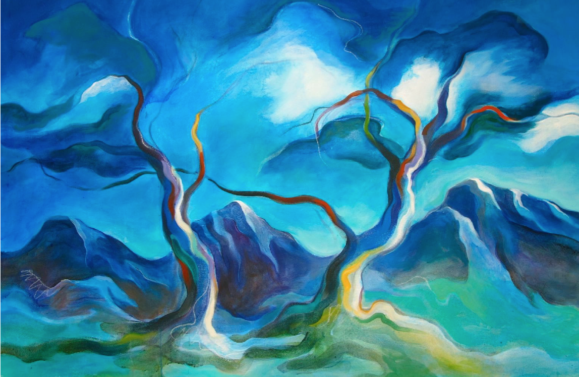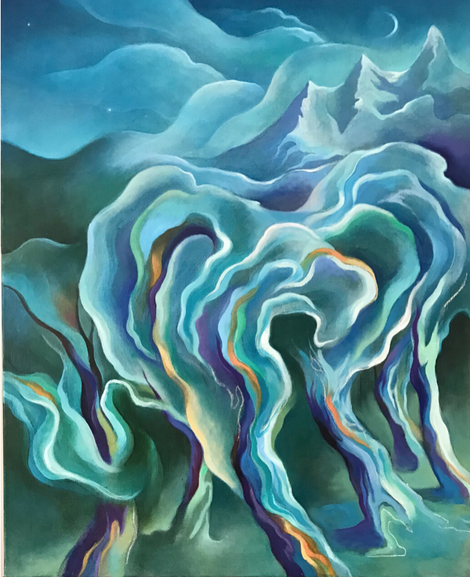 My work is a serpentine flow, embodying poetic and rhythmic gestures of sensuous swirling lines, undulating edges and forms that merge into each other in waves of color and light. Everything is alive. My paintings express the primordial energy that exists within nature.