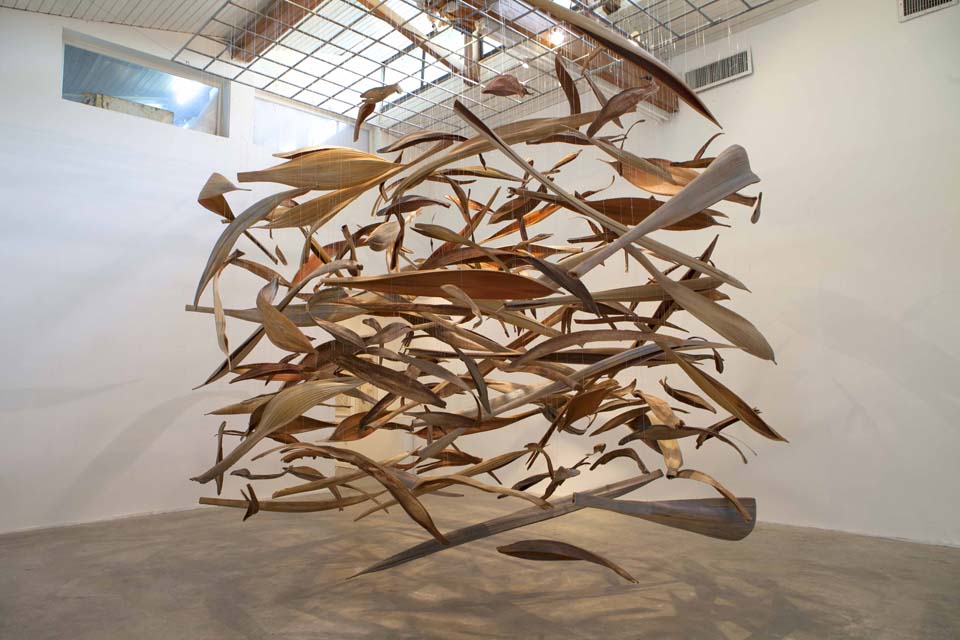 But it is not only in man's discards that I have found inspiration. Exploring the artistic possibilities of nature's discards is a new path on which I have recently embarked. Several of my current works are comprised entirely of palm spathes - elegant dried pods that exist in a variety of shapes, sizes and tones. In casting these natural forms in bronze, or suspending them in kinetic installations, I have sought to transform these botanical elements into evocations of aviary and marine life, to highlight the beauty of their unadulterated forms, and to engage them in my on-going effort to confront environmental issues.