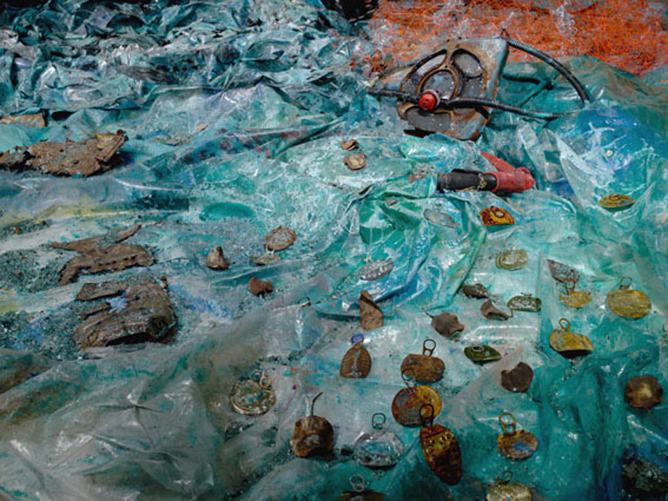 Living in a country where water scarcity is a constant concern, it is perhaps of no surprise that the environmental and ecological themes that most frequently inform my works revolve around issues of water. My contribution to "Aslaviva, Water and the Environment" (Tel Aviv Opera House, 2002) challenged viewers to confront Israel's need to update her antiquated water systems; my monumental floor installation "Surfaces/Appearances" (Ashdod Art Museum/Monart Center, Ashdod, 2009) addressed the pollution of our natural bodies of water; and, most recently, my kinetic sculpture 'Turmoil' (Artist's House, Tel Aviv, 2015), offers a commentary on the vanishing variety of marine life due to over-fishing and other human abuses.
