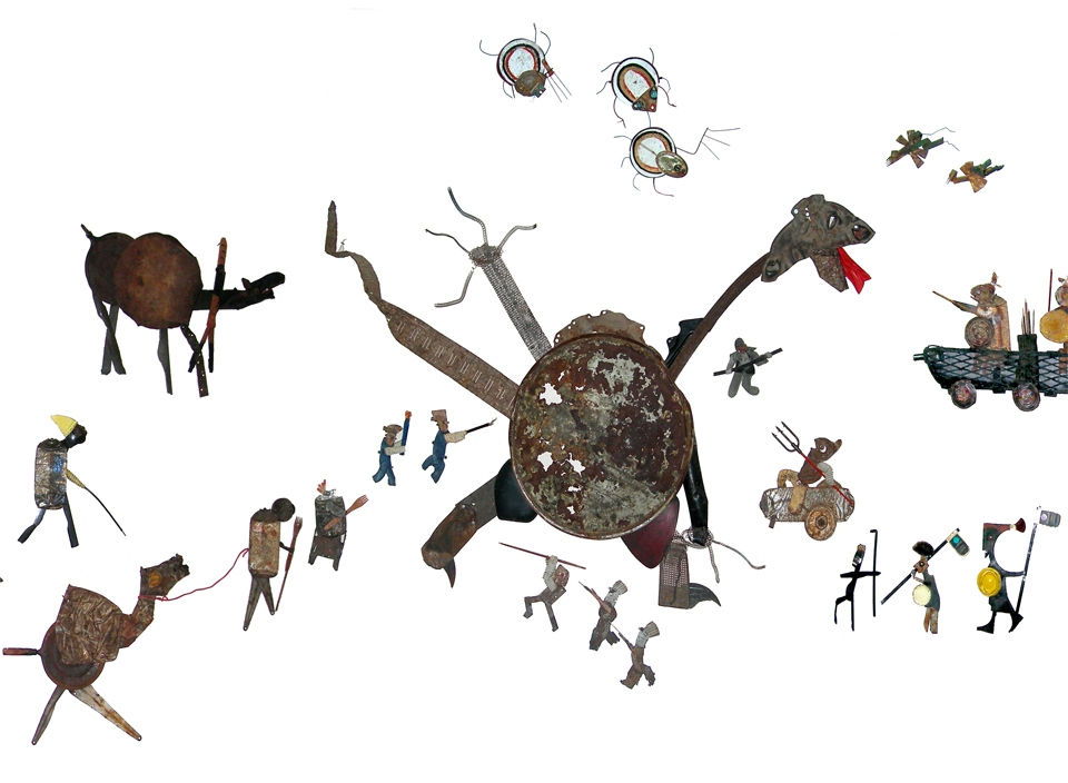 The process of transforming these found objects into something utterly new, infused with life and energy, personality and expression, rhythm and movement is the driving force behind my work: a personal recycling as it were. My deeply-ingrained habit of seeing faces and figures in everything has led to the vast majority of my works being figural. Whether human or animal, the raison d'être for each of my creations is always two-fold: revealing the unrecognized beauty of their recycled surfaces, and encouraging the contemplation of themes of human and environmental significance.