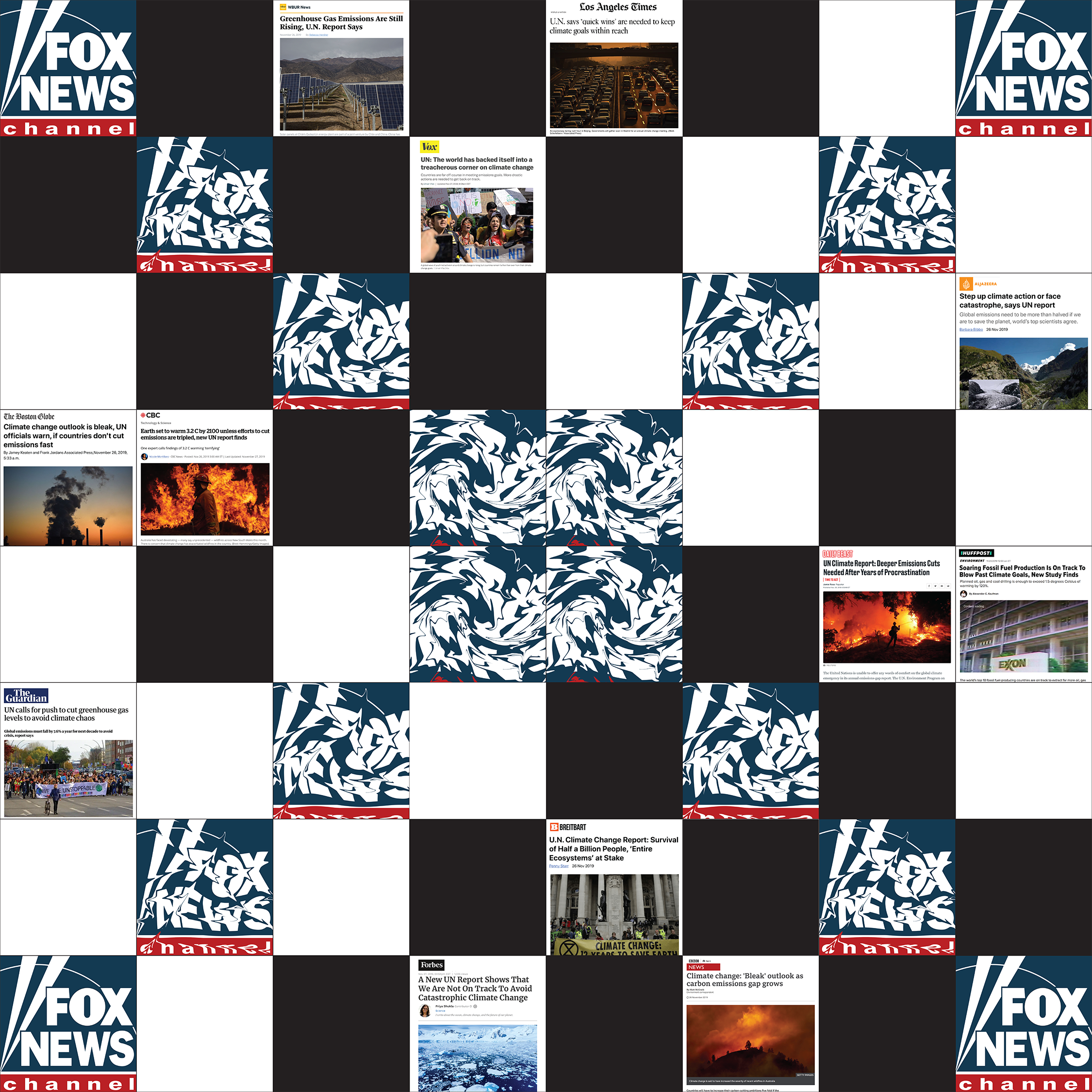 Annenberg's recent artwork deconstructs the reporting of five major climate studies -The Emissions Gap Report, 2019, The National Climate Assessment, the Paris Climate Treaty, the UN's 5th IPCC Report and the Hindu Kush Himalayan Assessment.