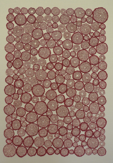 Microscopic images of water-borne organisms have inspired my artwork. These organisms have an organic chaos of elements of beauty, complexities and fragilities. Through the use of different fiber techniques I transform these images into organic abstractions. There is a randomness that is in nature that for me allows my exploration into creating large-scale installations that start from those images of microscopic organisms.