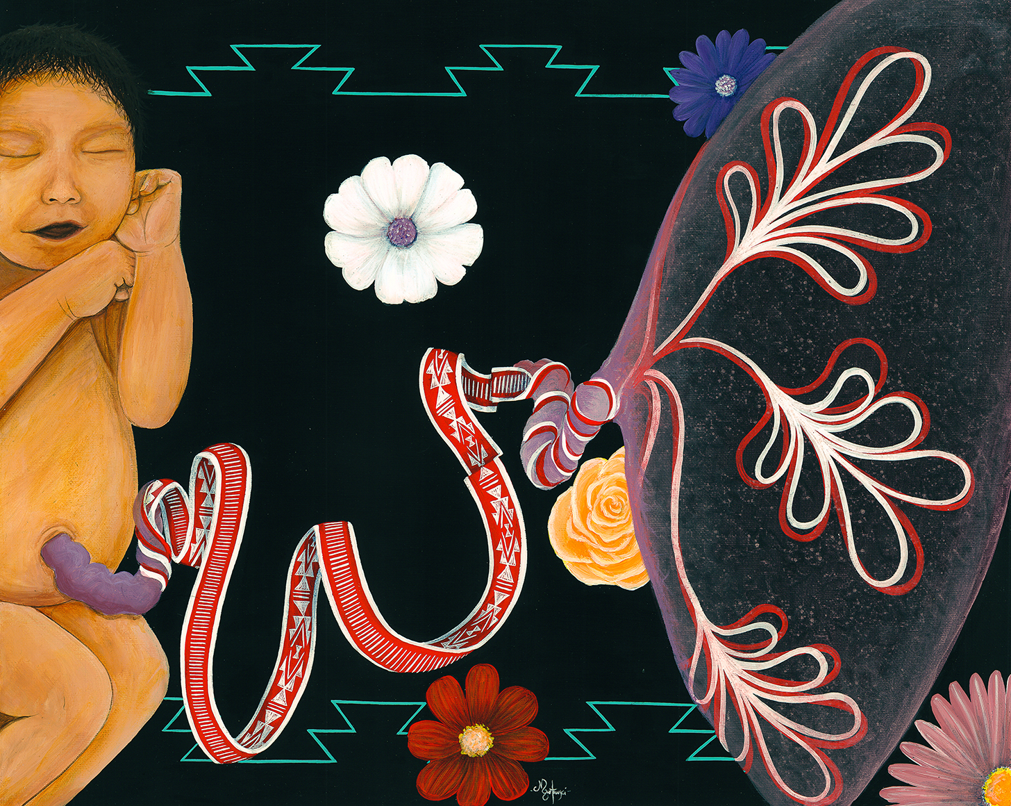 Mallery has a large-scale mural titled, “Morning Prayer”, on permanent display at the Indian Pueblo Cultural Center which depicts the history of the Zuni People from Creation to modern times. Her oil painting symbolizing the ties between the Grand Canyon and Zuni culture is part of a traveling collaboration called the Zuni Map Art Project. Other noted works include a 12-piece pastel and ink set entitled “What Makes a Zuni?” on permanent display at the Zuni IHS in Blackrock, NM and two murals painted at the Ho’n A:wan Park in Zuni Pueblo. Mallery’s work was part of an interactive Google Doodle that kicked off Native American Heritage Month on November 1, 2021. You can also find her work “Extraction and Remediation” as part of the Institute of American Indian Arts Museum of Contemporary Native Arts’ Exposure: Native Art and Political Ecology traveling exhibit.