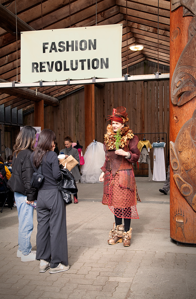 Her artistic commitment to ecology is based in her dedication to using only sustainable and low impact materials such as bark, seaweed and fruit peels in her wearable art.