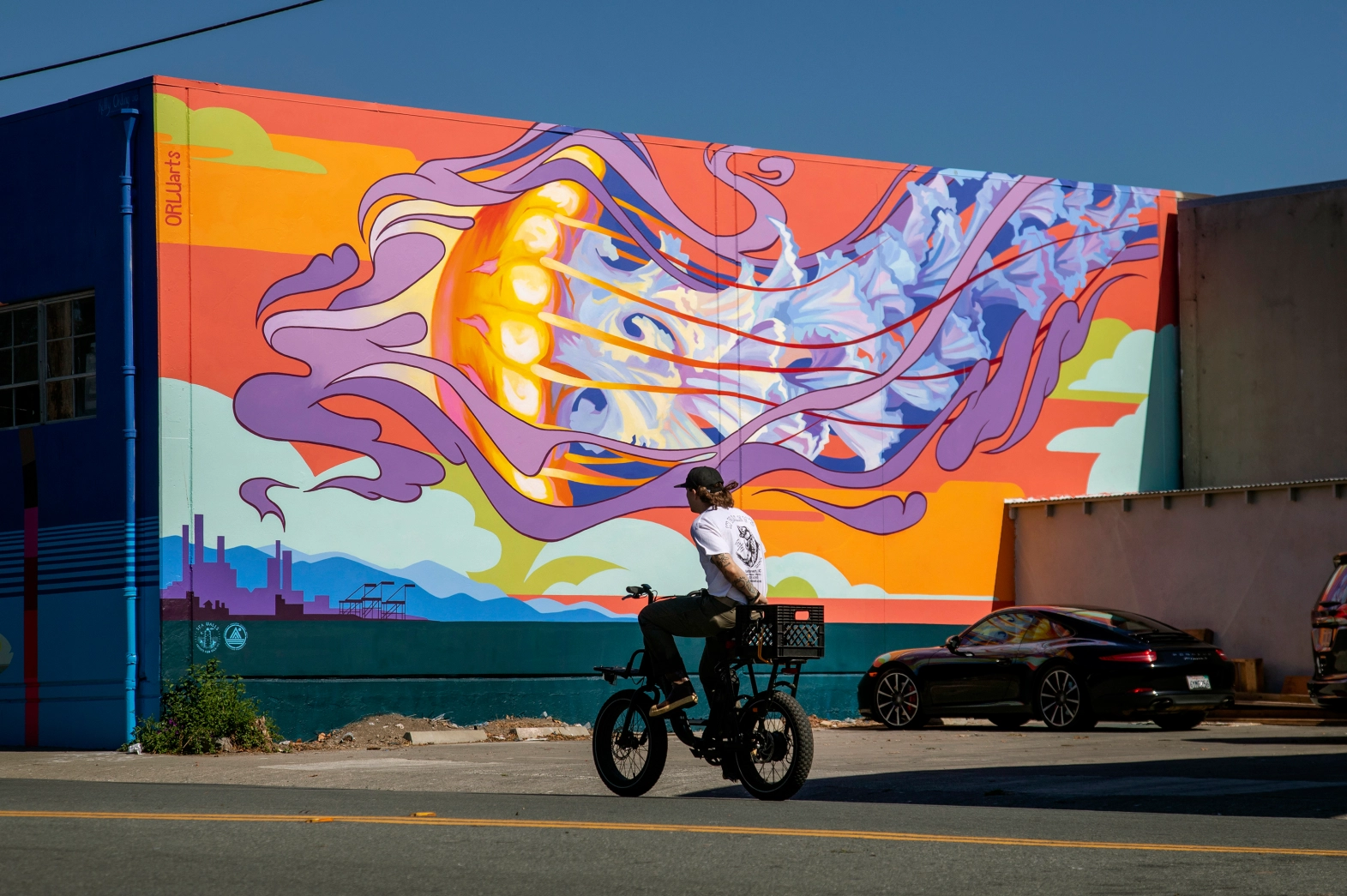 Liv Losee-Unger is an Oakland based muralist working under the name ORLUarts. She specializes in vibrant, colorful murals that celebrate community, honor the environment, and inspire happiness. Liv has been painting murals professionally since 2017 and started ORLUarts in January of 2021. Since then, she has been contracted for several notable large-scale commissions, including partnerships with the cities of San Francisco, Sacramento, Placerville, and Palo Alto. You can find more about Liv and her work at www.orluarts.com or her instagram @ORLUarts.
