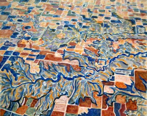 My in-flight fascination with the textures and abstractions of the earth and clouds inspired me to create mixed media paintings and wall hangings that helped to combat my fear of flying. My 2010 solo show at Ceres Gallery (NYC), Fearless Flying! (April 27 - May 23, 2010), also shares in writing the personal experiences that contributed to my fear, including my 9/11 flight, as well as the various 'tools' that have enabled me to return to flying without fear.