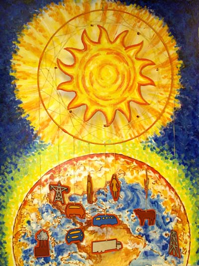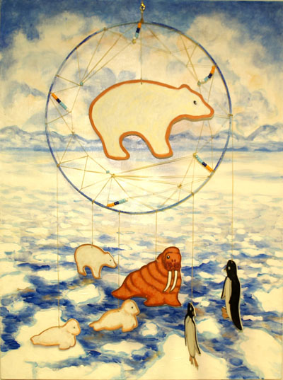Volunteering in Montana for the Buffalo Field Campaign fueled my desire to learn about diverse environmental issues. Dream Quest featured large colorful buffalo wall hangings and dream catchers suspended over paintings that explore universal connections between human spirituality, the non-human animal world and living in harmony with the environment. (Ceres Gallery, March 2008). I also highlighted environmental red flags in Earth Matters, a solo show of monotype prints. (Washington Printmakers Gallery, DC, September 2007).