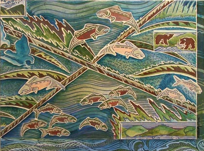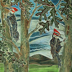 Robyn Beth Priestley is a mixed-media block printer, painter and designer who has been working on conservation issues in both her artistic and professional career for her entire life. Her work generally focuses on native animals, plants and habitats, especially those threatened or endangered. Each piece is inspired by an outstanding animal or plant, but also shows the appropriate habitat. The works are illustrative, but also abstracted to some extent, to express the patterns, movement and life in the subjects and the landscape. Her works also express some of the spirituality that she finds in nature. Sustaining the natural world, while encouraging human interaction with nature, is the impetus of her work.