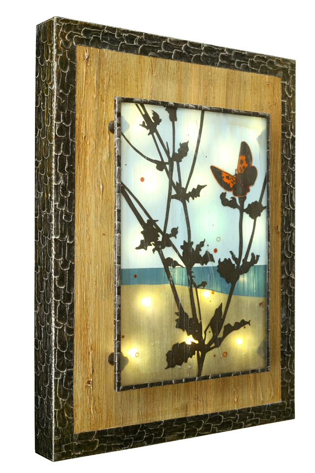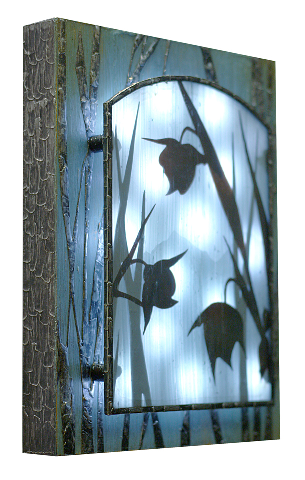 The plants and animals of the West are a treasure trove of subjects for my work. From the Mojave to the Sierras to the Mediterranean climate of the Bay Area, our native species offer a diverse mosaic of breathtaking beauty. My boldly colored, textured, three-dimensional metalworks and glass lightboxes explore the outrageously brash forms of wild California.