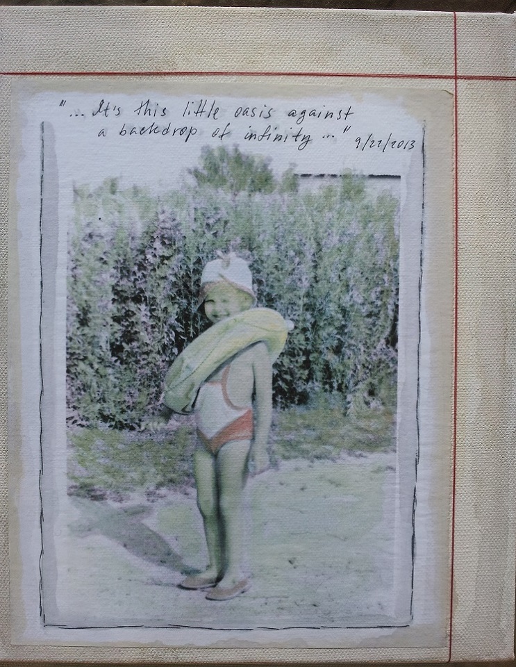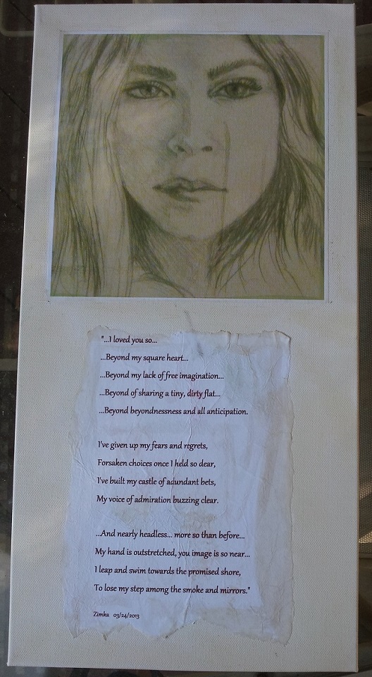 In my work, I like to experiment with different media, sometimes a bit unexpected, like wine as a watercolor. Without any formal training in either drawing or painting, I have to just trust the instinct and go for it to see what happens. I've done costume designs for music videos in my past and looking to expand my art skills for a solo show.
