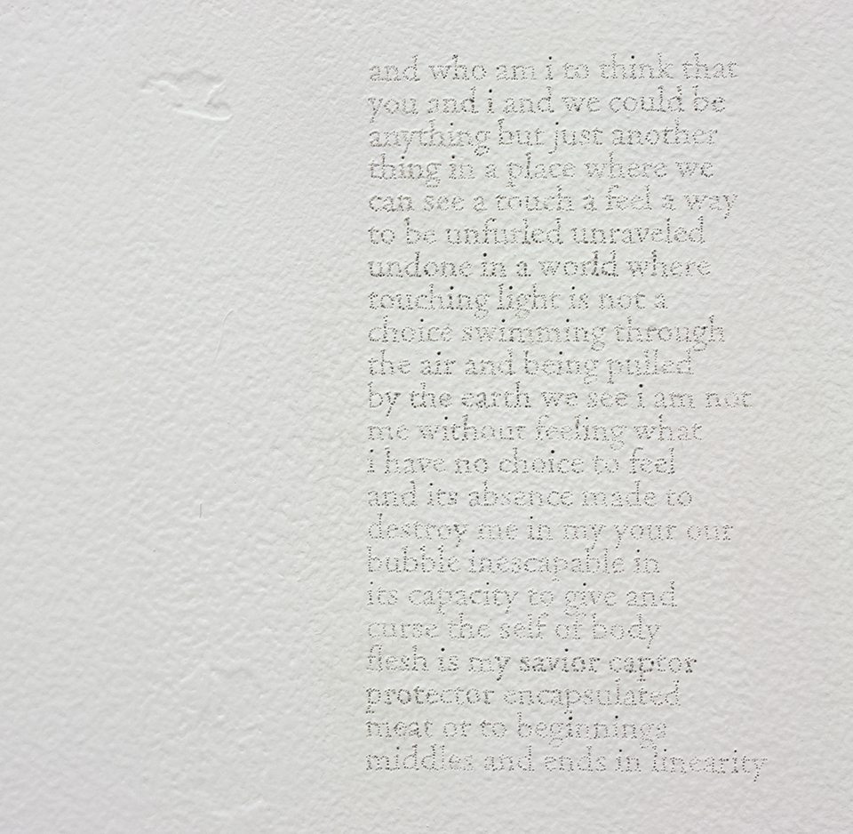 My interdisciplinary practice draws on history, memory, and survival to visually examine relationships among identity, narrative, and trauma. My desire to understand my contemporary sense of self is fueled by my investigations in both personal and public histories. Labor and repetition provide an expanding framework for understanding difficulties within physical and psychological contexts. The futility and transience of my labor and its by-products yield evocative objects of questionable beauty and value. By exploring narrative, identity, and trauma I inextricably link my understanding of empathy and compassion to deeply seeded genealogies of activity. The symbolic relationship between my work and my life directly correlate to my desire to understand my sense of humanity.