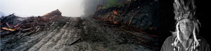 In 2001, in response to the threatened logging of 1000 year old trees in culturally sensitive areas, the Squamish called upon witnesses to fulfil their role in another part of the ritual, that of texwaya7ni7m, a verification ceremony. Hundreds of witness letters were written on behalf of the Squamish Nation and the old growth forests. These were formally delivered to Interfor by Chiefs and Elders in full regalia. It was the beginning of the end of Interfor cutting in TFL 38, as they agreed to a stay of (logging) roadbuilding while the Squamish developed their own landuse plan for the area. It seemed that the subversive activist ritual of Uts’am/Witness had achieved what years of confrontational protest had not.