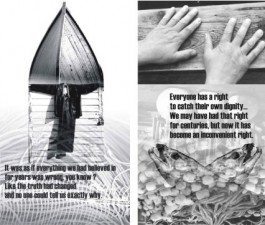 Newfoundland artist Pam Hall also speaks about our relationship to place, the land and the seas in her visual art works. One such project was Just Fish. In 1997, Hall was invited to participate in an interdisciplinary research project examining ethical approaches to the fisheries crisis on Canada’s Atlantic and Pacific coasts. Working with scholars from across the disciplines, participating in discussion groups with stakeholders in Newfoundland and British Columbia, the artist spent three years listening, learning, and stretching her involvement with practicing fishers.