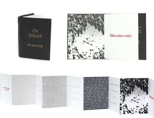 On Judgment: The Book of Bully was created for An Inventory of Al-Mutanabbi Street, a project of The Al-Mutanabbi Street Coalition, a global book arts response to the car bombing of Al-Mutanabbi Street in Baghdad on March 5, 2007.