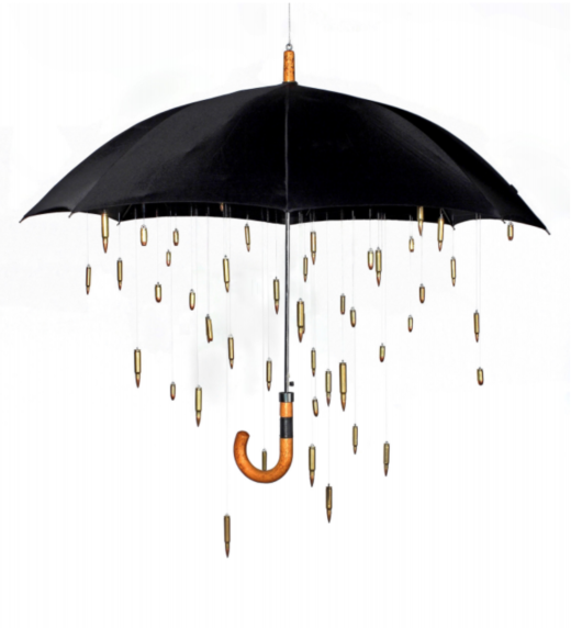 Security Storm is a suspended umbrella with bullets of varying sizes raining down beneath. The arraignment asks us to consider what it means to be protected and feel secure as well as ask who is providing that protection. The bullets are also a stark reminder of how immersed in gun-culture we are here in the United States. We are virtually swimming in a sea of ‘protection’, yet, as a nation, we feel increasingly vulnerable.