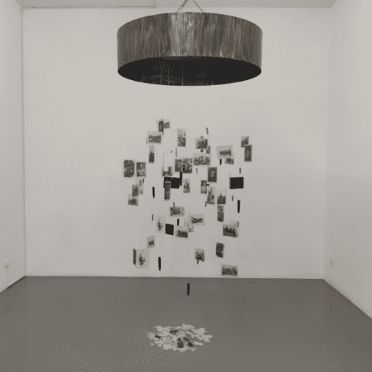 In this installation titled In Memory of Aziz, Madandar creates a nostalgic space inspired by memories of her grandmother’s house in Iran. The artist’s mother, in trying to maintain the memory of Aziz, the grandmother, has kept the house and furniture as it was eighteen years ago when Aziz passed away. The installation consists of objects, a video, photo, and a painting. The objects installed here are all actual objects borrowed from the house, and the video and photo were also shot in that space. The painting was painted about 37 years ago after Madandar’s uncle Ahmad, was martyred in the Iran-Iraq war in 1982. The letters were written by Ahmad in the war. In one of the letters, he described the process of sending him to the war. Ahmad was the last child of the family and was 17 years old. He left the house to the war without telling anybody, just one of his brothers. Shortly after that he wrote the last letter which is his will and said goodbye. The audio in this installation is Madandar’s mother voice reading the letters.