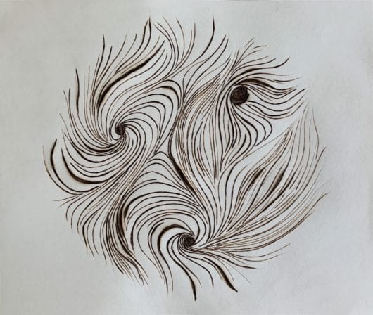 Similarly, I continue to explore the beauty of wind patterns while also feeling ‘burnt out’ by the ever increasing destructive climate patterns they represent. The storms that are now always somewhere in our world represent human storms as well as environmental storms. I find that burning these patterns into paper is both a release of frustration and an expression of this reality. I deeply believe that we need to continue to work toward positive changes on many fronts, while we also need to acknowledge our exhaustion and numbness so that we can heal and keep working.