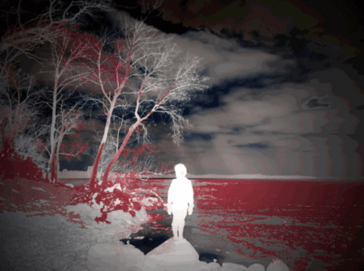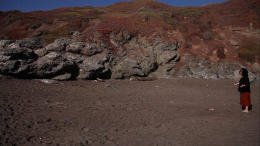 Separated by the ocean, ‘Bloop’ is the reverberation of the bombs that created a generation. An audience participatory score performed as a movement with eyes closed, parallel to the ocean, the following three actions are repeated in order, until out of the camera’s frame: 1. Throw the provided rock forward. 2. Imitate the sound of the rock’s landing. 3. Locate the rock and refer back to action 1. The deficiency in translating this experience can be seen as a contrast point of humor against the trauma of warfare. ‘Bloop’ empowers the performer to simultaneously mock and make oneself vulnerable, exorcising out of our body the weight and levity of warfare into an intimate and personal exercise, casting a rock like a bomb, reversing its power into an anti-climatic drop, and unremarkable plop, the opposite of a bombs devastation. ‘Bloop’ is the playful parallel, the blind search, the banality that comes out of the strife of warfare.