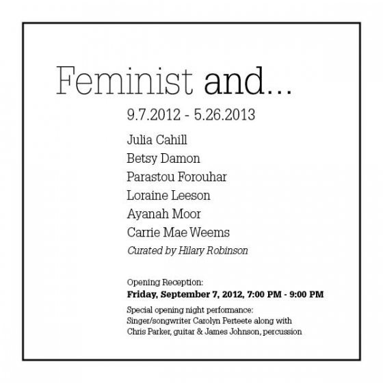 Six women artists from diverse backgrounds will create the newest exhibition of installation art at the Mattress Factory. “Feminist and “, curated by Dr. Hilary Robinson, explores feminism through the perspectives of women artists from throughout the world.Artists: Julia Cahill, Betsy Damon, Parastou Forouhar, Loraine Leeson, Ayanah Moor, Carrie Mae WeemsWe are happy to announce Carolyn Perteete, jazz vocalist, along with Chris Parker on guitar and James Johnson on percussion, will be performing during the opening!