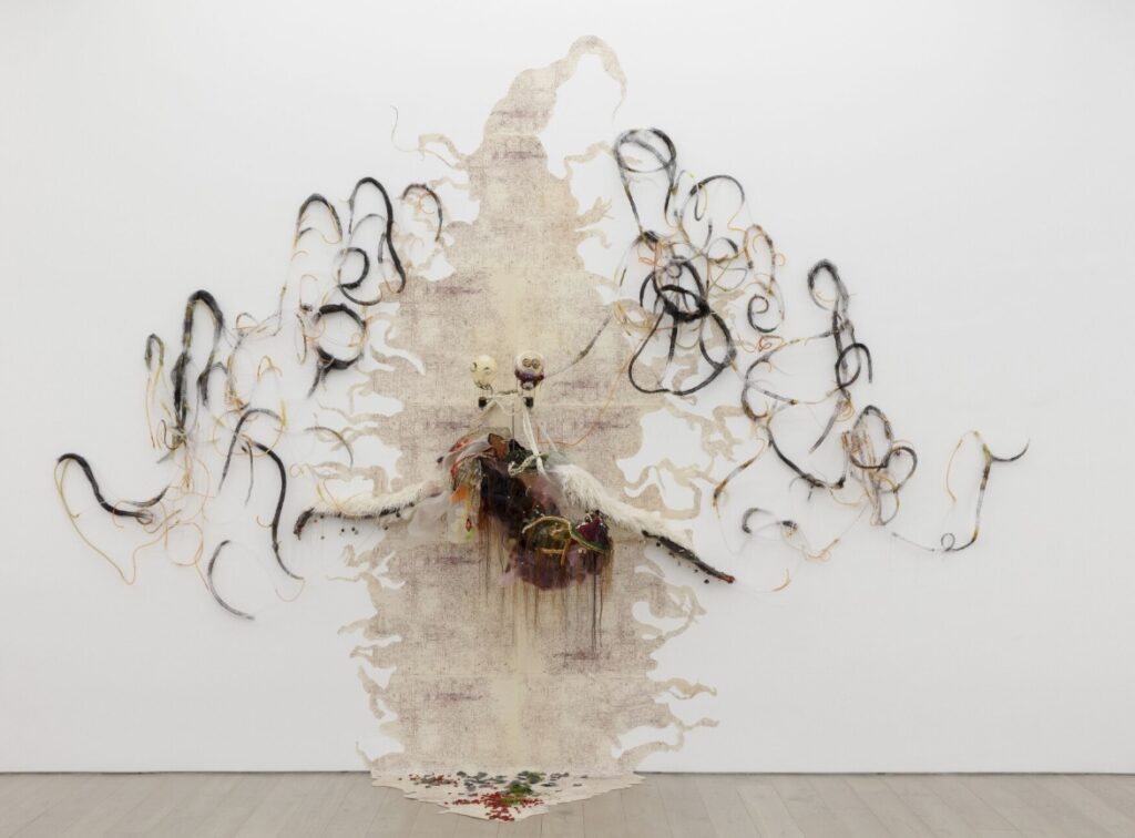 Incense sticks, Kumkum, vaseline, turmeric, Indian blouse gauze, fake fingernails and eyelashes, chalk, foam, feathers, fabric, Spanish moss, light bulbs, wax, Silly Putty, quilting pins, plastic tubing, latex and rubber gloves, acrylic and dry pigments, dimensions variable. Installation: The Whitney Biennial 2000, Whitney Museum of American Art, New York, 2000