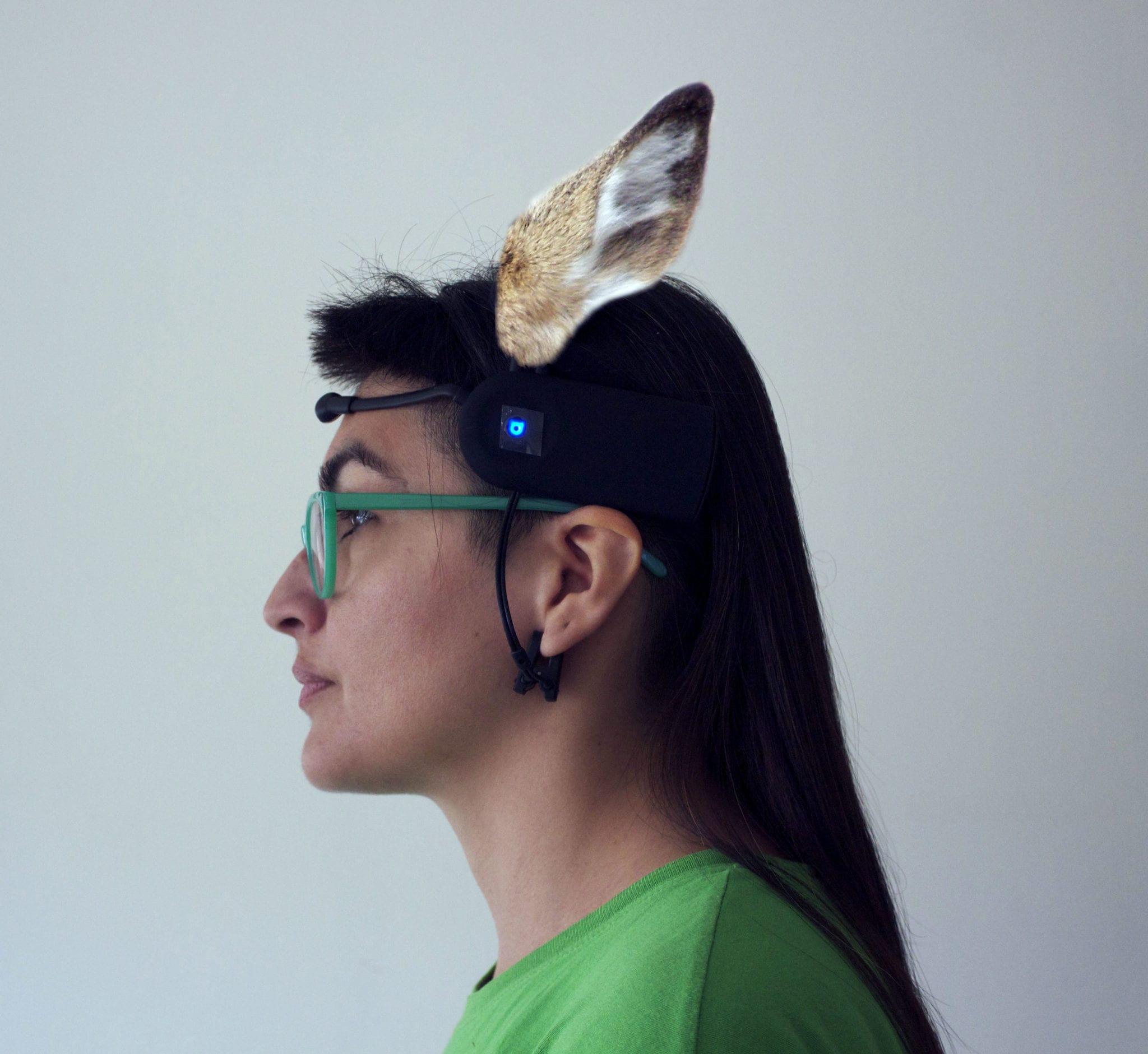 Unfortunately, many of these saviors are actually transforming them into orphans. Does leave their fawns alone in a place they have deemed safe during the day, and retrieve them at dusk. Due to our densely populated urban and suburban areas, those safe areas may be highly trafficked by human dwellers and neighbors. Many of these orphaned fawns are rehabilitated and released, but another large amount exhibit failure to thrive while in captivity, and despite the rehabilitator’s best efforts we saw many of these incredibly cute fawns refuse to eat and then die. While we cared for some of the weaker of the fawns, I wondered whether it might help their transition to the care of rehabilitators if we could mimic some of the calming signals they share amongst themselves. Deer Ear Protoytpe defers to the role played by ears in transmitting information amongst white tailed deers, and is coupled with the neurowear technology of Japanese Necomimi ears, which claim to translate brain waves into ear movements. We propose working together with behavioral scientists, who can help us isolate specific ear movements that this prosthesis can mimic, and that are activated through thought commands.